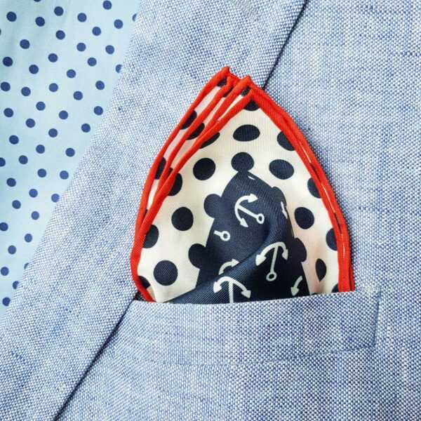 SAILOR BLUE ILURÄTIK kujutab ankrumustrit klassikalistes sinise-punase-valge toonides. See on täiuslik meeste aksessuaar enda moekaks väljendamiseks.